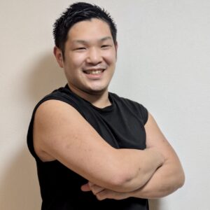 学生の頃は柔道をしていて、そのおかげで今も体はがっしりめ。